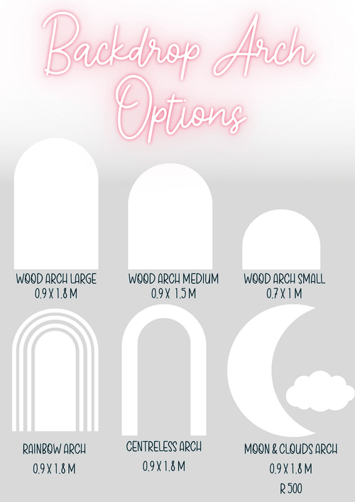 We can make the backdrop arch for you any custom colour, for R 400 extra.